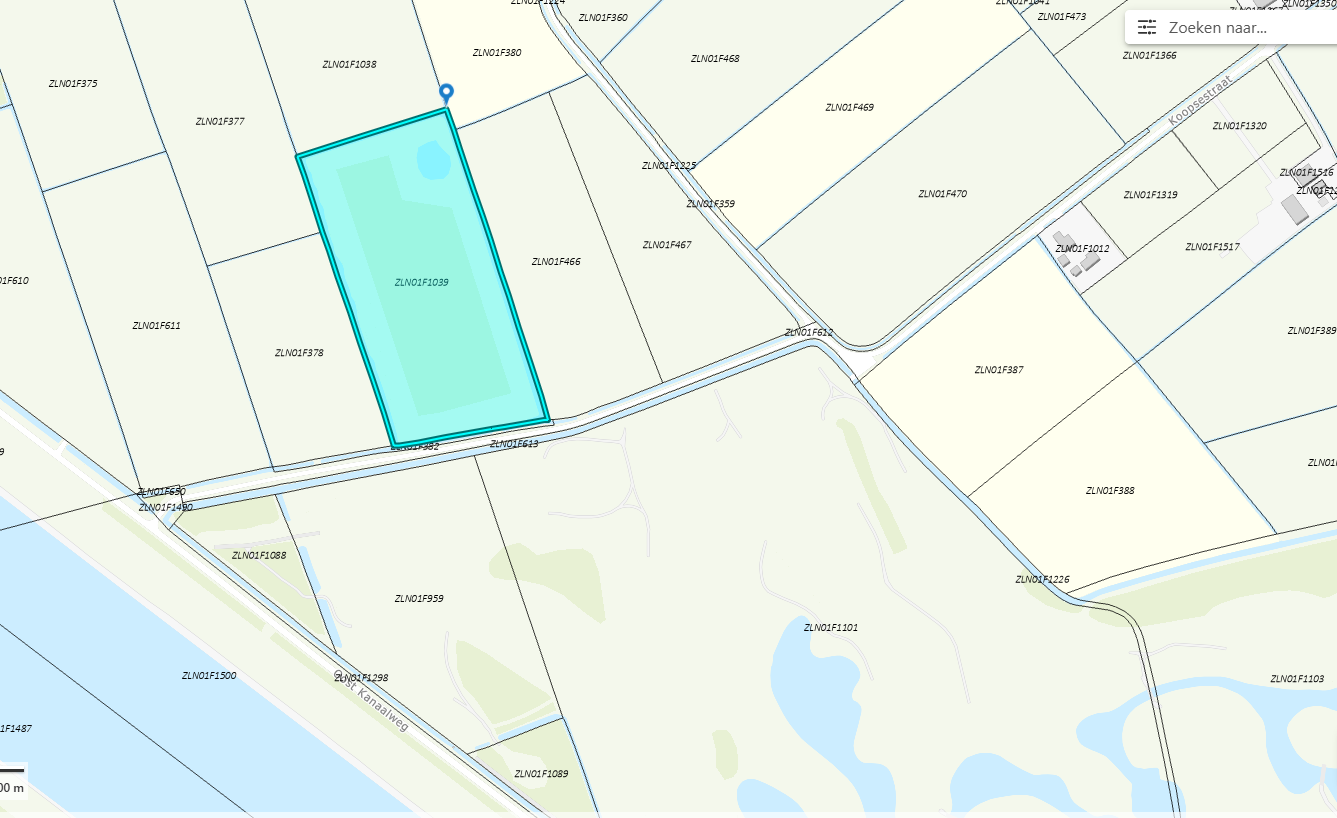 | Zaaknummer | Adres (nabij) | Tekening | Kadastrale aanduiding | Oppervlakte (circa) | Voldaan aan selectiecriteria | Uiterlijk reageren op |