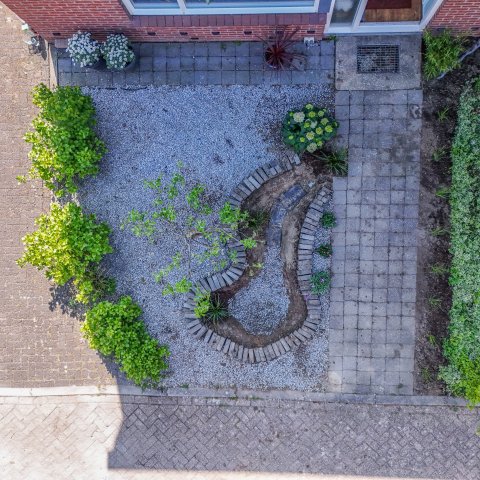 Versteende voortuin in Zetten verandert in wateropvang: wadi aangelegd door Lodewijk Hoekstra